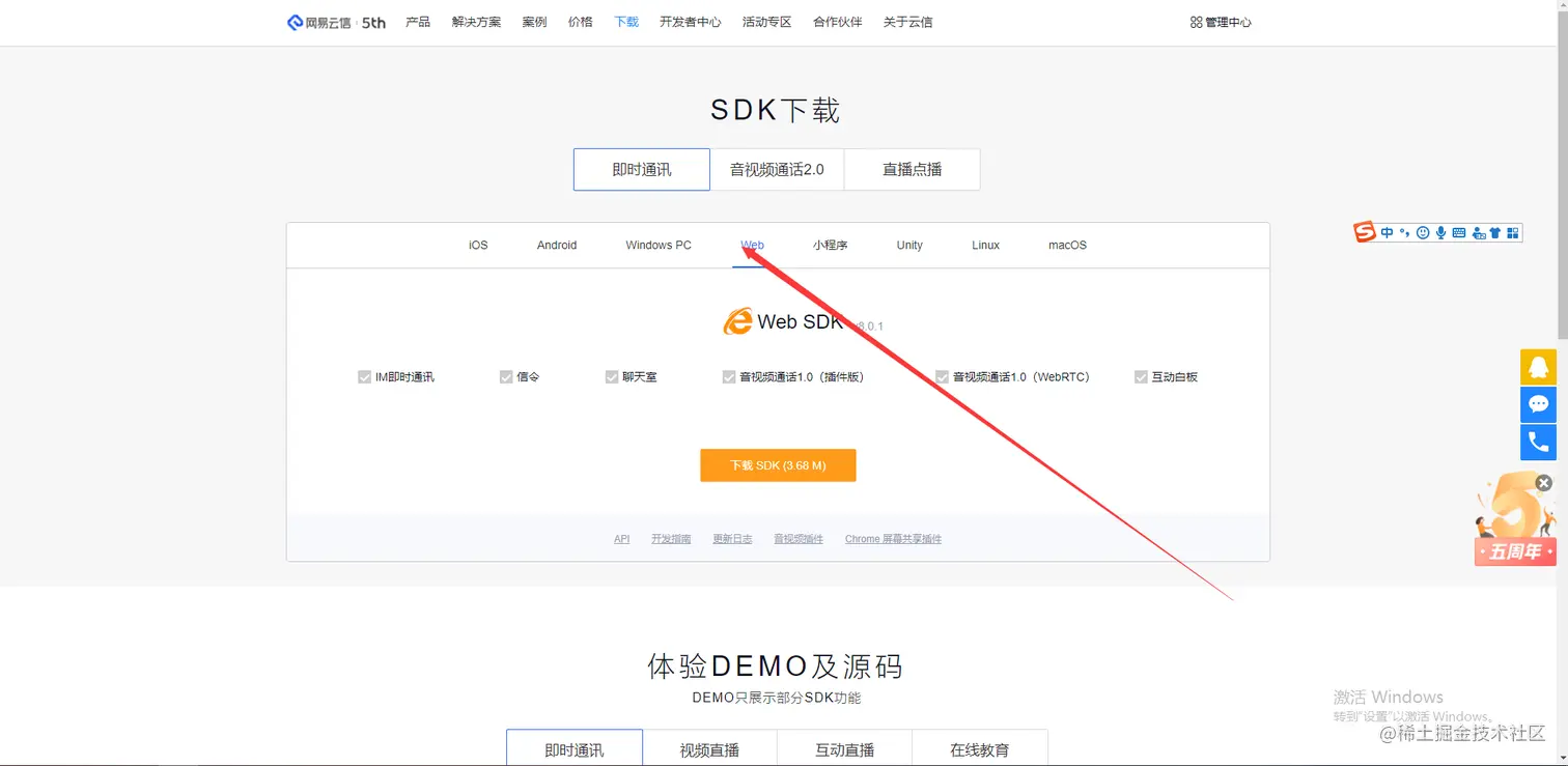 yunxin.163.com/im-sdk-demo 这个的SDK地址 在这里我们选择