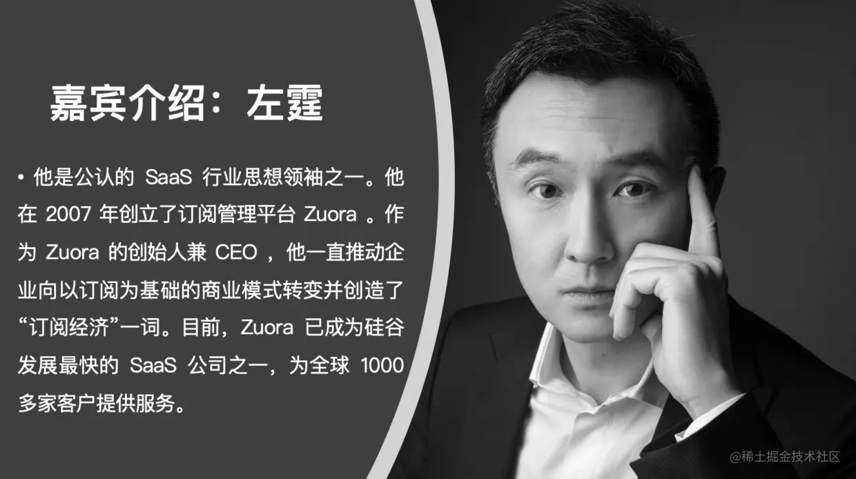 2020 年 9 月 18 日,Authing 举办了一场名为「订阅经济和 SaaS 行业的未来」的主题沙龙。此次沙龙,全球最大订阅管理平台 Zuora 创始人 Tien Tzuo(左霆)向观众分享了 「无处不在的订阅经济」。 本篇梳理了左霆老师在沙龙的演讲内容,与你一同分享。