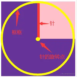 - 利用 transform-origin,将针的旋转点固定在 div 的左下角的位置;