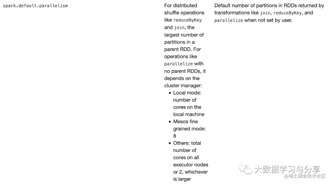 上图是spark官网关于spark.default.parallelism参数说明: