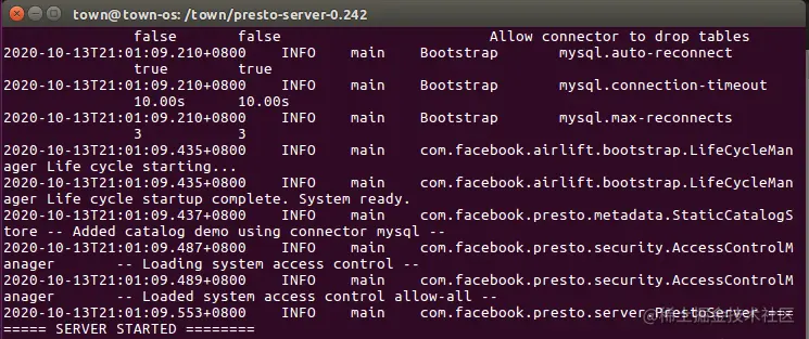 启动成功后可以在node.data-dir=/var/presto/data对应的文件夹下找到启动日志文件。