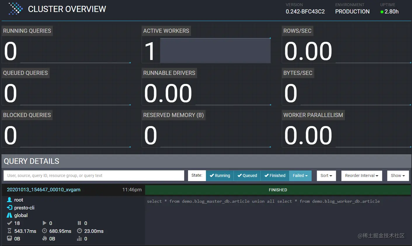 CLI提供了UI界面查看执行记录,访问地址:http://<coordinator的IP>:coordinator端口号