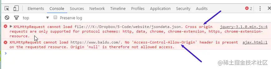 由于没有在服务器环境里运行含有ajax方法的页面,而是直接通过浏览器打开(类似file:///的访问形式,即file协议)