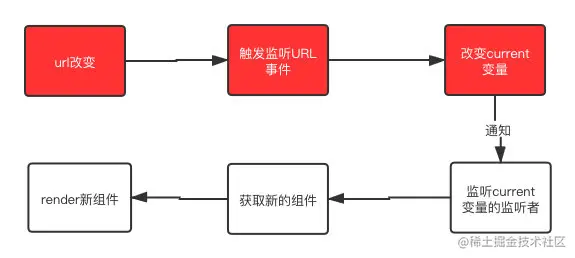 - vueRouter类新增一个history属性,指向了当前路由,首次加载路由以及每次路由变化时需要更新history的值。结合上文分析的hash以及history的current值。
