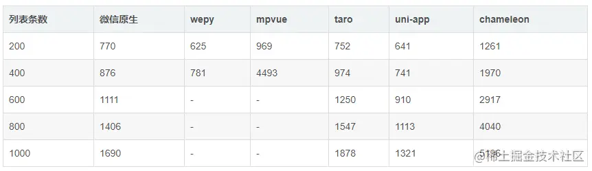 复杂长列表加载下一页评测结论:微信原生开发手工优化,uni-app>微信原生开发未手工优化,taro > chameleon > wepy > mpvue