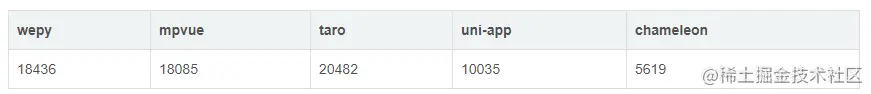 github star 数对比:taro > wepy > mpvue > uni-app > chameleon