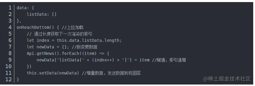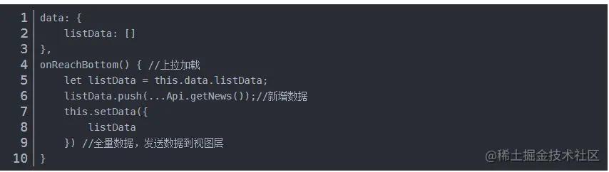 例如当前页面有20条数据,触发上拉加载时,会新加载20条数据,此时原生框架通过如下代码测试时,setData会传输40条数据