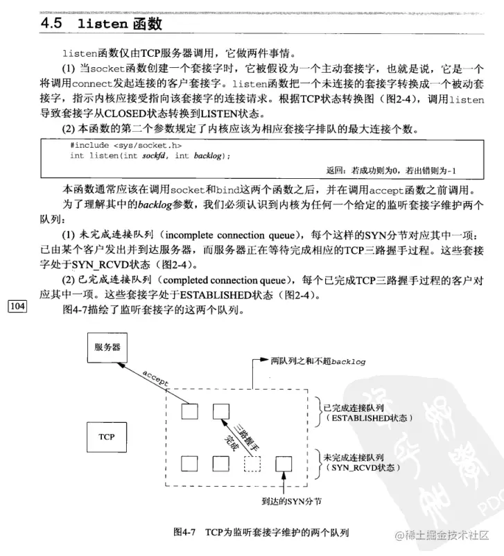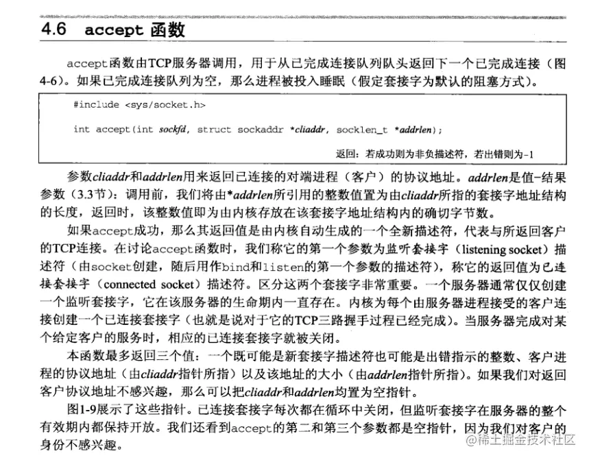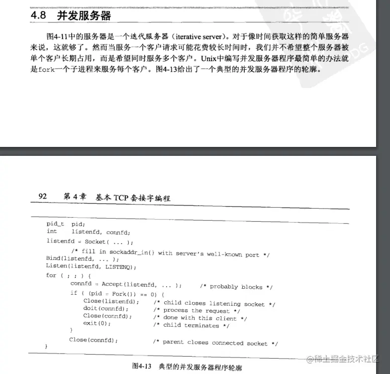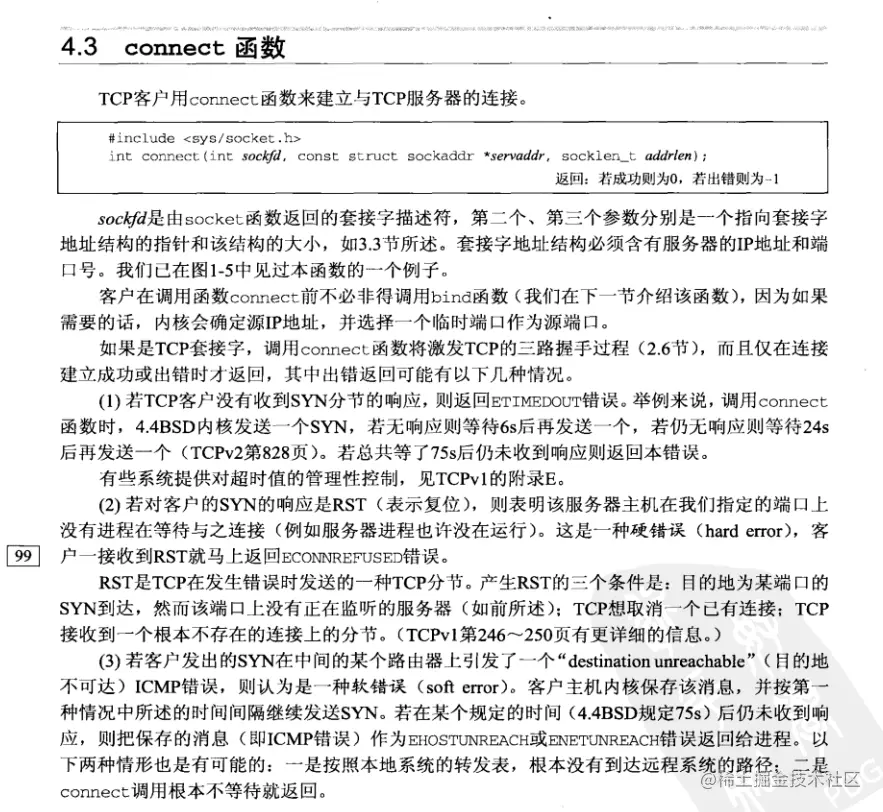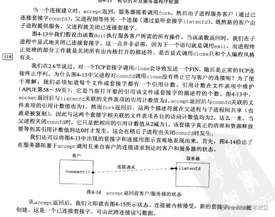 《UNP》第四章读后感 wanyicheng 2020-10-14 289 阅读1分钟 小结:了解了socket bind listen Accpet fork exec 等几个常用socket编程函数,了解了各个函数的语义和参数,以及各种返回结果,了解了监听socket描述符上面的已连接队列和等待连接完成队列的概念