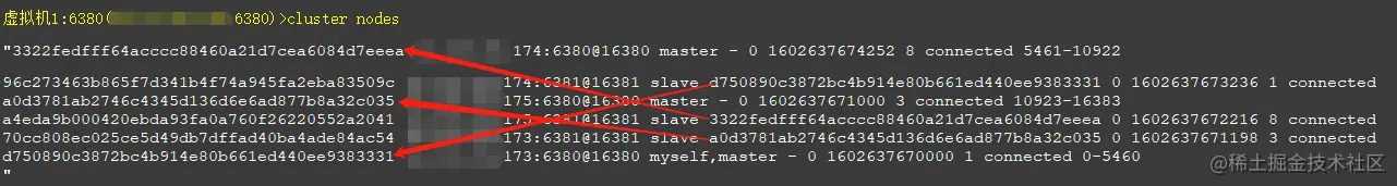 ./redis-cli -c -h x.x.x.173 -p 6380 -a 123456 cluster nodes