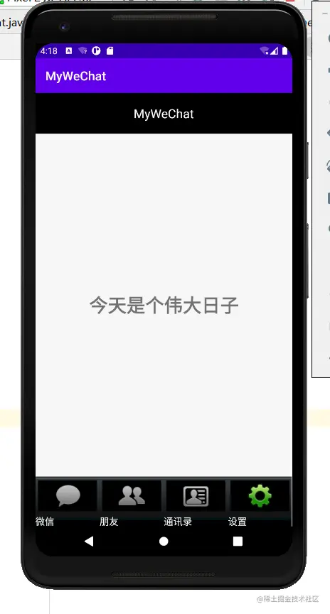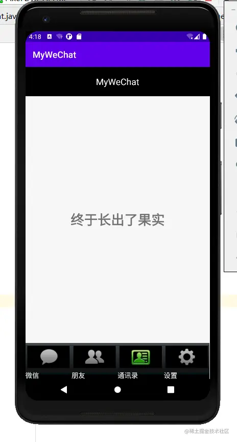 这本次实验中,需要我们控制的功能事件并不多,只需要我们完成,在底部点击后, 中间的fragment能够相应的进行轮转即可