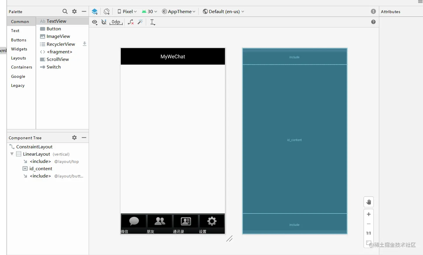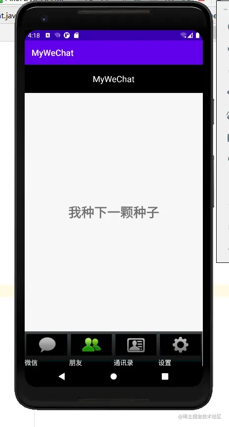 1.从这个界面的头部开始,显示了“mywechat”,需要一个layout的xml文件,命名为top.xml
