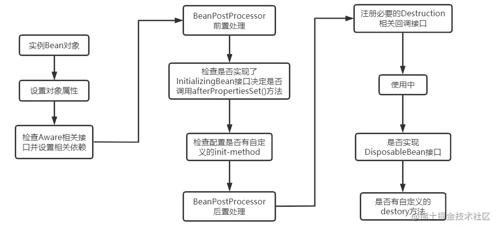 - 如果Bean实现了InitializingBean接口,调用afterPropertiesSet()方法