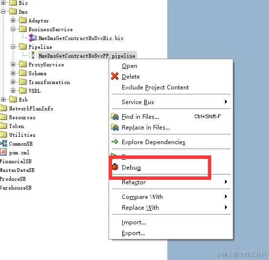 JDeveloper怎么实现本地调试 用户7992997051026 2020-10-14 179 阅读1分钟 开发osb接口省略... 调试步骤 1.现在要调试的pipeline,右键选择dubug 2.等到jdeveloper自带的weblogic启动起来之后选择 注意:这地方选择默认,不需要更改 3.最后选择执行按钮,进行调试 调试时候需要注意: 等到weblogic启动后,要把jar包导出来部署到本地服务器上,不然调试不了,具体怎么导入jar包略...