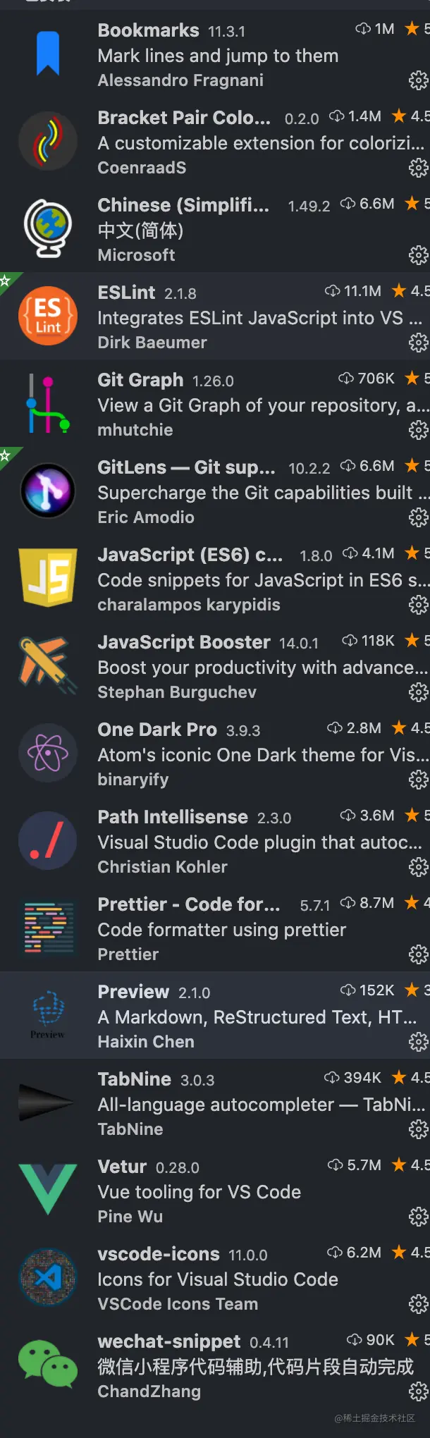 这里我只是贴出了使用的插件,具体作用可以自行百度, 用于记录工具,就不一一解释了;