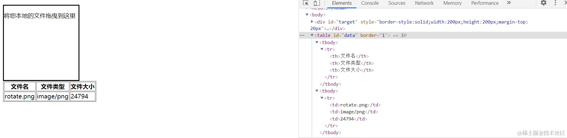tableElem.innerHTML = "<tr><th>文件名</th><th>文件类型</th><th>文件大小</th></tr>";