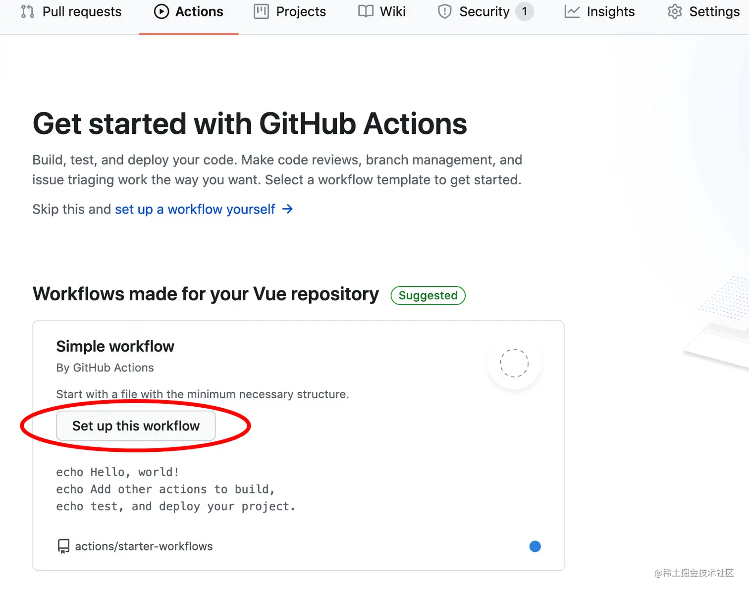 这时会在根目录生成一个ci配置文件.github/workflows/blank.yml