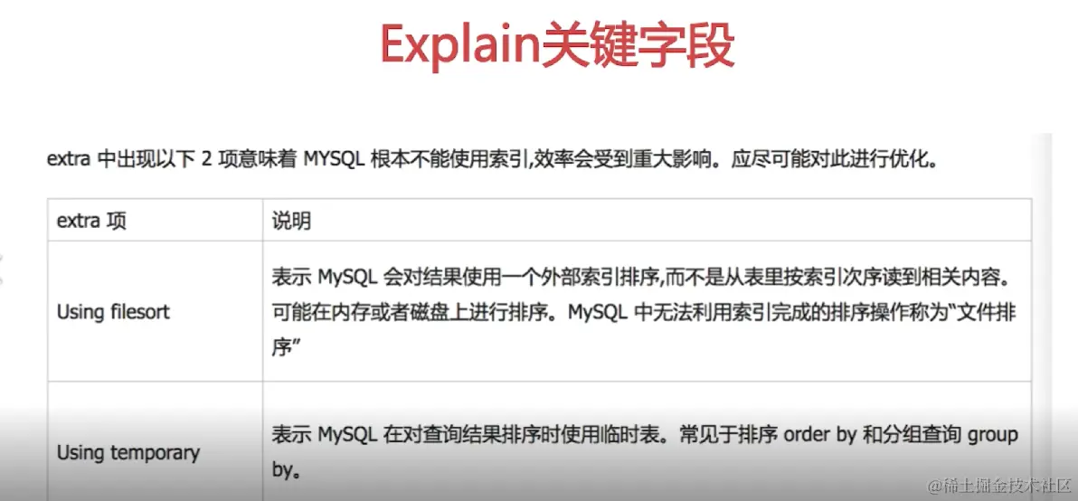 extra如果出现临时表或者文件排序,就需要优化