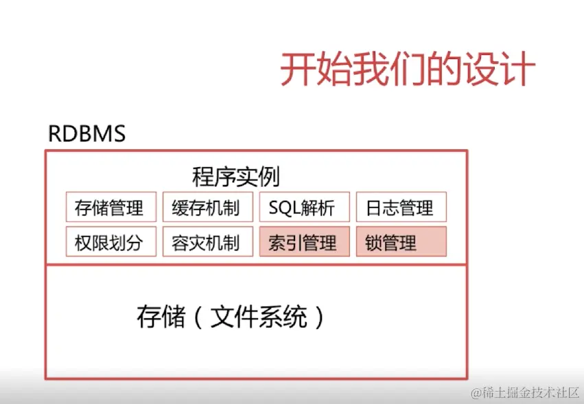 上图说明: 数据库的设计,首先是有 存储模块:这些是在磁盘里; 存储管理模块:数据的关系需要映射成逻辑的关系,实现了物理内存的逻辑映射; sql解析:将我们编写的语句解析成机器指令 缓存机制:缓存sql语句和查询的数据,提高数据库性能,也有淘汰机制 日志管理:bin.log日志文件 权限划分:不同的用户,对数据库的操作权限不同 容灾策略:保证数据库在崩溃之后,如何去恢复 索引管理: 锁管理: