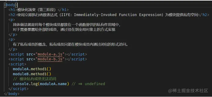 <!-- 通过给 script 添加 type = module 的属性,就可以以 ES Module 的标准执行其中的 JS 代码了 -->