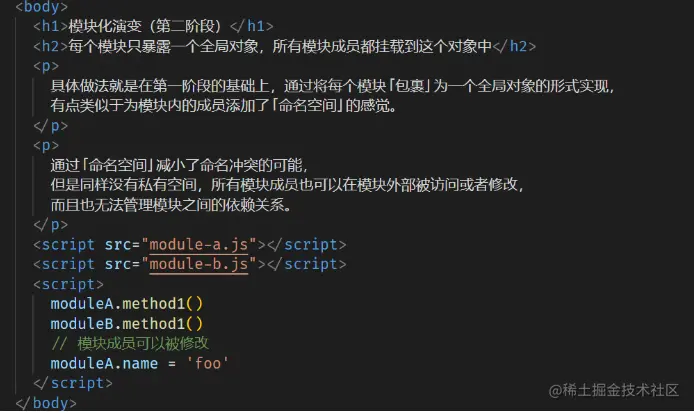 每个模块只暴露一个全局对象,所有模块成员都挂载到这个对象上