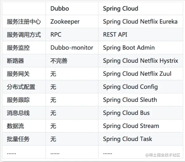 Dubbo和Spring Cloud对比