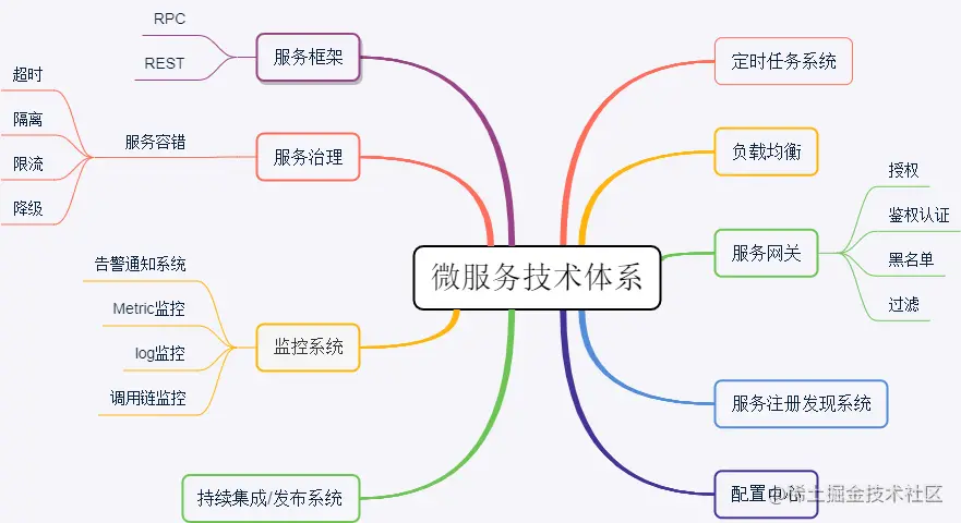 下图列出了微服务的技术体系: