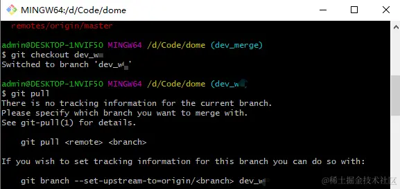 比如下图,我是拉取 GitLab 项目上一个 dev_yxx 同事的分支到本地。