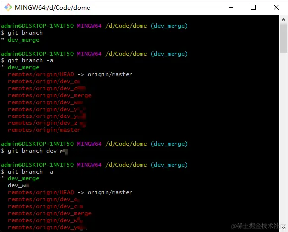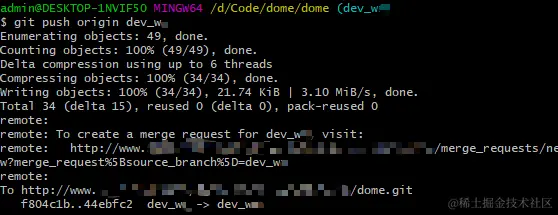 创建完成会自动进入新分支路径,如上图所示,从 dev_zxx 转向了下图所示 dev_wxx 分支。