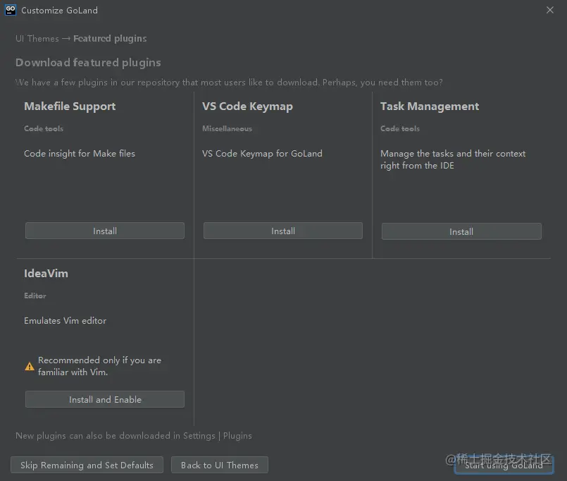 上网查阅了相关资料,网上推荐使用 GoLand 或者 VS Code 这两款 IDE。这里选择安装 Goland。在官网下载,然后一直点 Next。