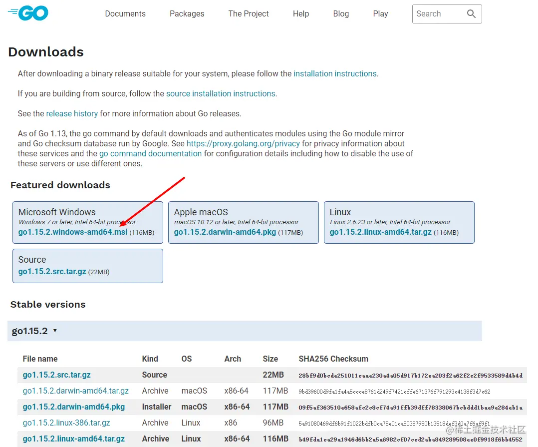 首先在 Go 官网 下载 Windows 系统下的一键安装包。
