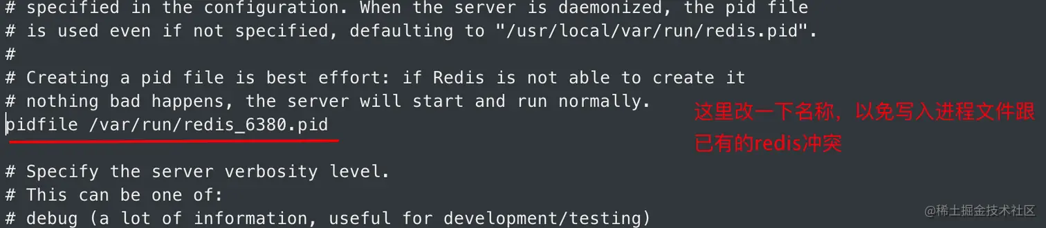 进程文件pidfile,redis启动时会自动分配进程号并写入文件,以下配置为了指定进程文件