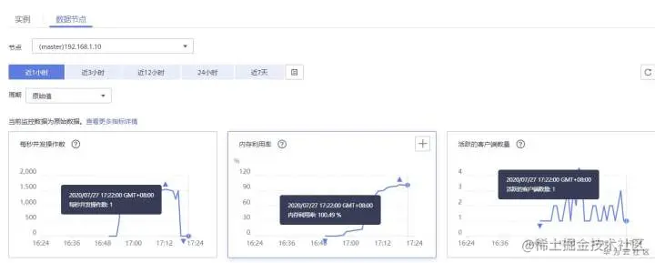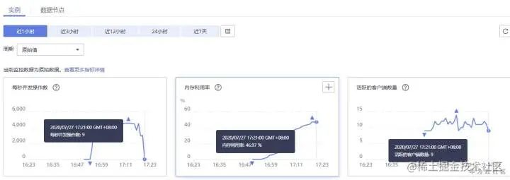 配置节点级别的入网最大带宽、出网最大带宽、CPU利用率监控指标的告警。如果某个节点存在热key,这个节点的带宽占用、CPU利用率都比其他节点高,该节点会容易触发告警,便于用户发现潜在热key。