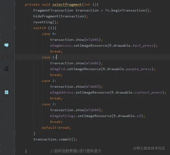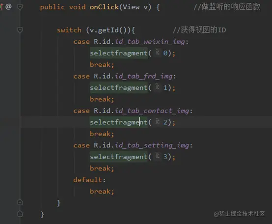 监听函数:根据点击来执行相应的命令并且改变图标。其中show()函数,括号中的参数是主界面layout的实例,储存上面的java class布局文件。而mImgWeixin是布局文件的imagebotton,这里点击后就将图标改成这个样子。而resetting()函数则是在执行到下一次点击后就对之前的App图标进行一次复原(就是将图标设置成原来的样子),对选择的App起到一个突出作用。具体源码看我的gitee仓库。