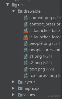 之后将处理后的图标从系统的目录下复制到Android Studio左面工程栏上的App/java(generated)/res/drawable 目录下便于后面图标的调用。