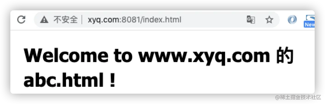 server { listen 8081; server_name www.xyq.com; location / { root /usr/local/var/xyq; index index.html; } rewrite ^/index\.html /abc.html permanent; }配置好之后,执行