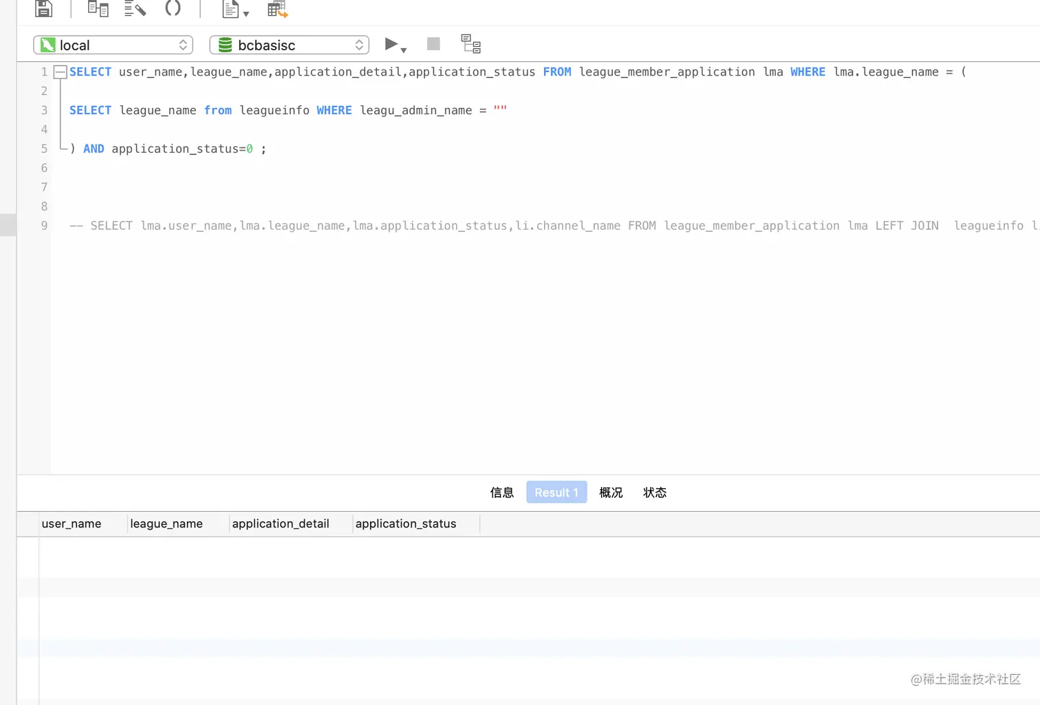 联盟管理员只看自己管理的联盟下的还未处理的申请,这里先给出我写的sql语句,大家可以先自己想一想如何实现,不过不清除再看我的sql