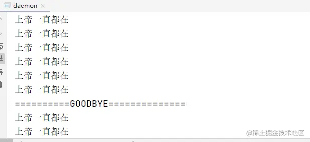 守护线程与普通线程的唯一区别是:当JVM中所有的线程都是守护线程的时候,JVM就可以退出了;如果还有一个或以上的非守护线程则不会退出。也就是,只要存在用户线程,守护线程就一直在。