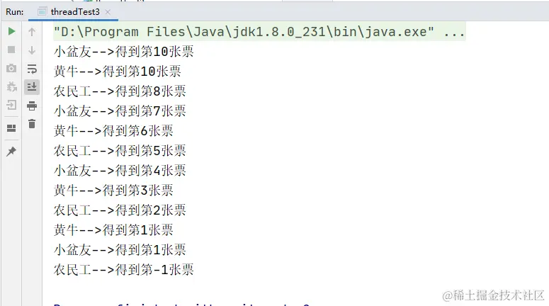 System.out.println(Thread.currentThread().getName()+"-->得到第"+tickerNumber+"张票");