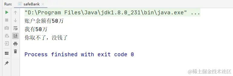 System.out.println(Thread.currentThread().getName()+"取不了,没钱了");