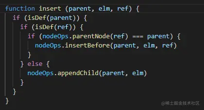 - 因为是递归调⽤,⼦元素会优先调⽤ insert插入上级节点 ,所以整个 vnode 树节点的插⼊顺序是先⼦后⽗,最后 insert ⽅法把整个DOM 插⼊到一开始createElm ⽅法传入父节点body中。至此整颗dom就挂载在页面上啦。