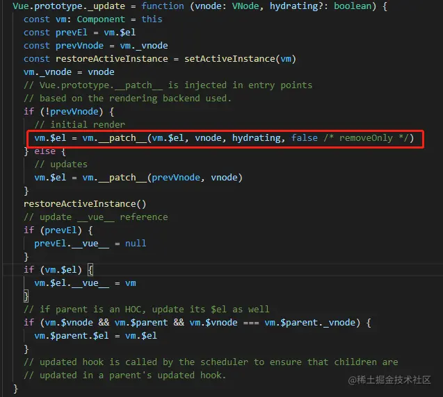 _update 的核⼼就是调⽤ vm.__patch__ ⽅法,