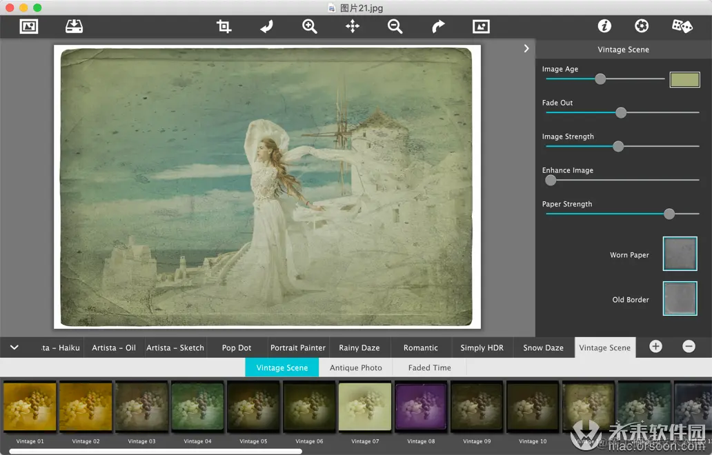 JixiPix Premium Pack将18种令人难以置信的创意照片效果捆绑为一个功能强大的软件包:Aquarella, Artista Haiku, Artista Oil, Artista Sketch, Artoon, Chalkspiration, Dramatic Black&White, Grungetastic, Kyoobik Photo, Moku Hanga, NIR Color, Pop Dot Comics, Portrait Painter, Rainy Daze, Romantic Photo, Simply HDR, Snow Daze and Vintage Scene。