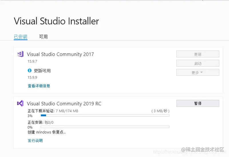 图中的RC是正式发布之前的候选版样式,所有的安装过程二者是一样的~