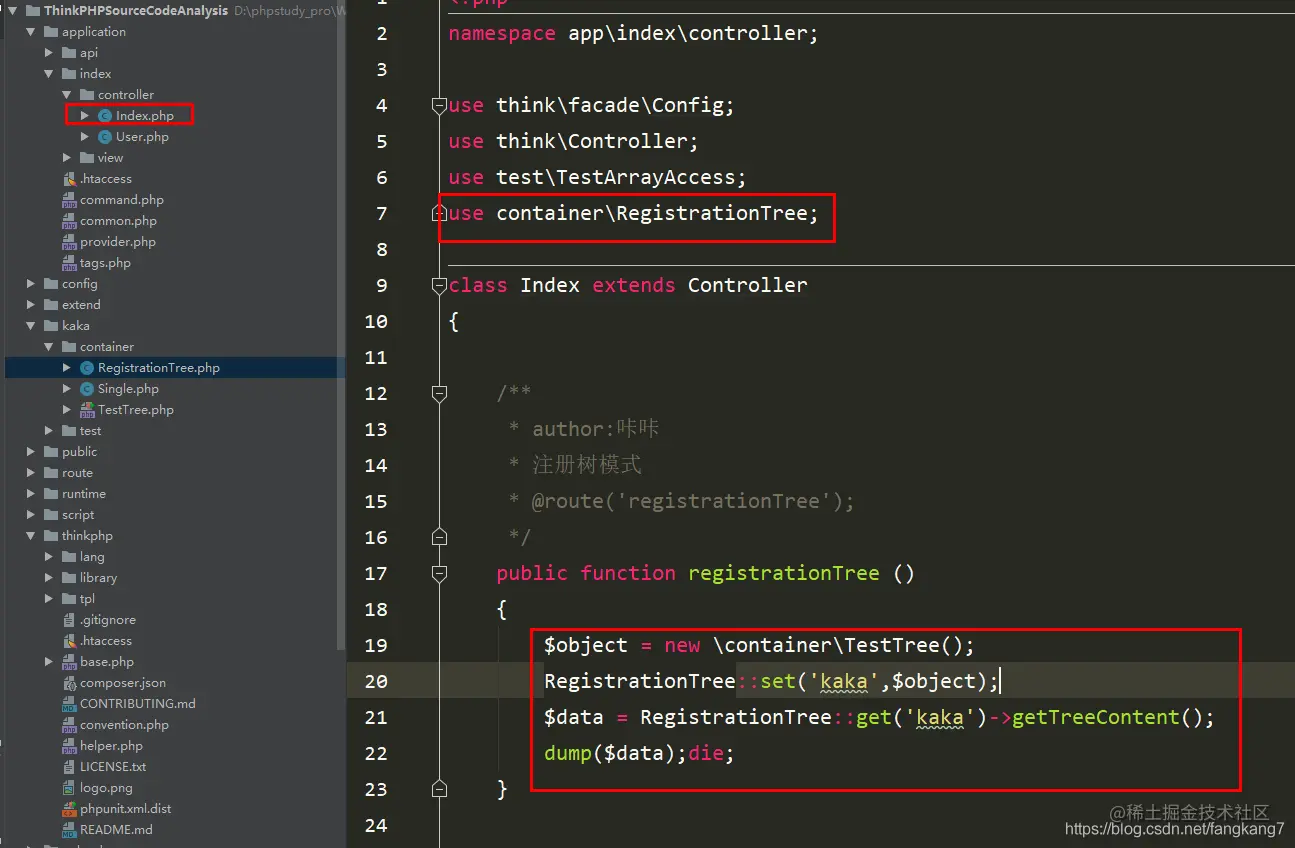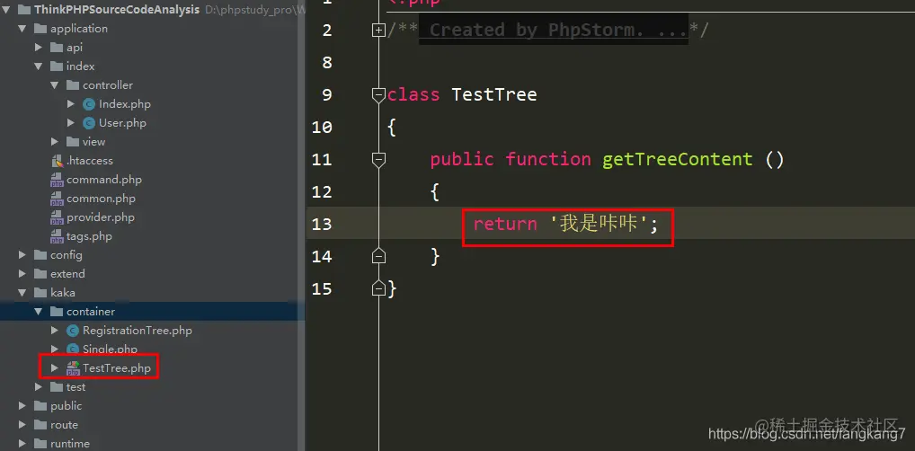 在做测试的时候一定要注意命名空间问题哈!这里的kaka目录是之前在类的自动加载哪里配置的,如有不会的可以去第一期文章查看。