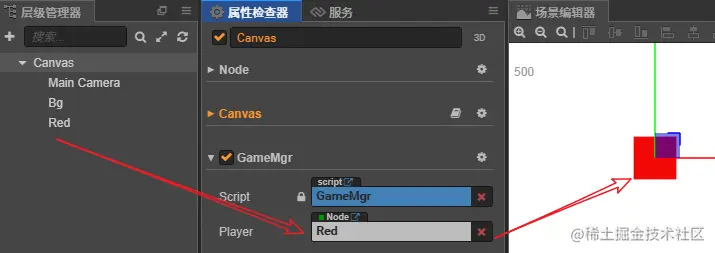 案例:按上下左右键,控制红色块的运动。新建PlayerCtrl.ts,挂载到Red节点上。代码如下: