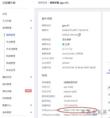 每个CCE集群,都会有一个内网访问的IP地址。其Master的IP可以在界面看到。