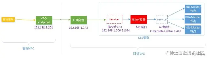 所以也就没办法通过vpcep直接连3台Master了。
