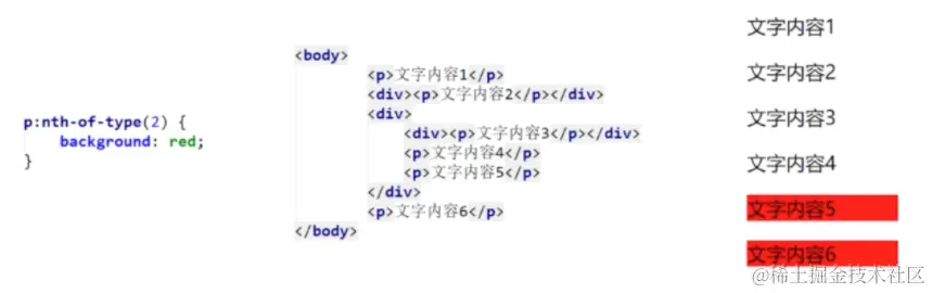 和 child()类似,不同的是nth-of-type() 只计算同种类型的元素