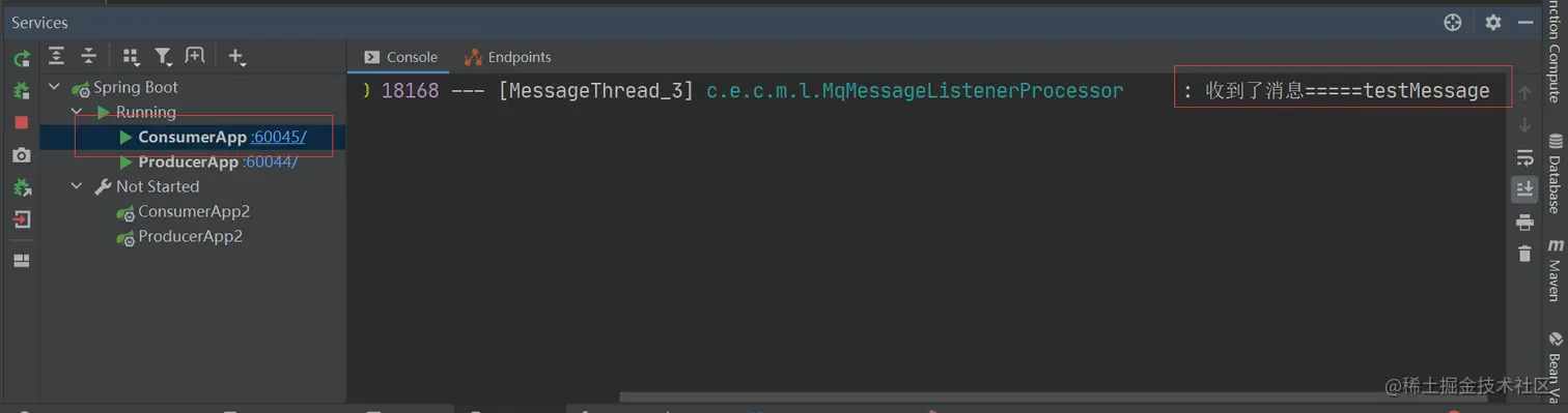 注意这里注入的MqMessageListenerProcessor,是消息监听,实现代码为