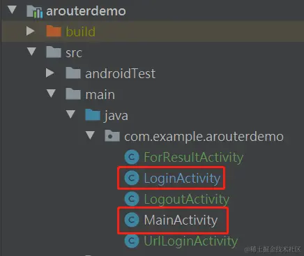 从app的MainActivity跳转到ArouterDemo的LoginActivity,因为只是一个Demo,所以偷懒,直接使用ArouterDemo中MainActivity的布局。